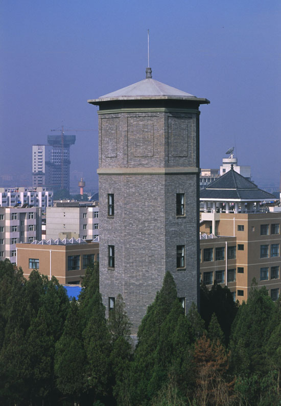 水塔历史悠久,始建于1954年,与南单楼(和平楼)、旧文科楼、旧理科楼等都是由苏联专家设计,带有显著俄式建筑的风格。