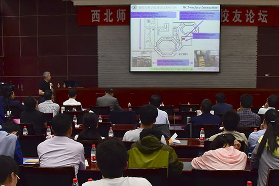 论坛上,校友中国航天科技集团公司510所研究员李得天、中科院兰州化学物理研究所研究员陈建敏、中科院安徽光机所研究员刘建国、暨南大学教授李宝军、中国科学院上海技术物理研究所研究员刘银年、西安交通大学教授徐忠锋、南京理工大学教授金成分别作了题为《真空计量技术及其在航天工程中的应用》《先进润滑材料和表面工程高技术应用研究》《大气环境光学监测技术进展》《基于光纤探针的光捕获与光操控》《高光谱成像遥感技术》《低能电子碰撞动力学》《利用多色激光波形优化波导管中高次谐波的产生》以及我校教师张登红、赵松峰、石玉仁、杨鸿武、李燕、裴东分别就自己所研究的领域作了学术报告。报告会后,校友们和师生一起参观了物理与电子工程学院和各实验室。