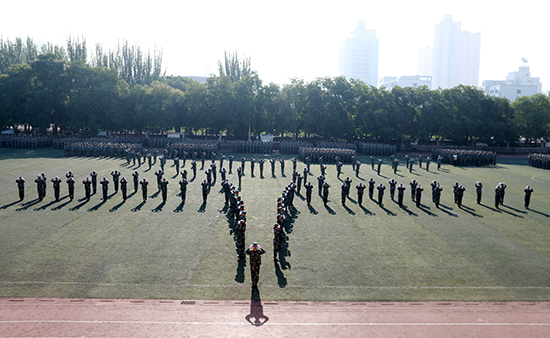 9月6日上午8时,西北师大2017级本科生军训成果汇报暨总结表彰大会在西操场举行。