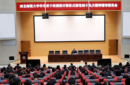 11月2日,西北师大学生骨干培训班开班。副校长张生勇和党委学生工作部、教务处、团委、兰天学生公寓管理中心、各学院负责人,辅导员及各班班长、团支书,楼宇楼层互助发展引导员,青年马克思主义者学生骨干培训班学员等共600余人参加活动。