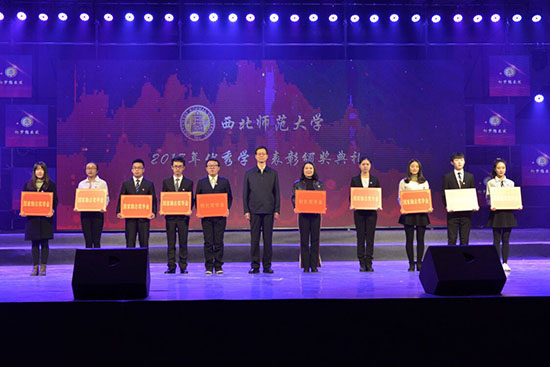 与会学校领导分别为2017年在学生思想引领、学习研究、创新创业、社会实践、志愿服务、校园文化活动等方面涌现出的先进个人和集体代表颁奖。2017年,西北师大共有8200余名本科生、研究生获得各类奖学金,奖励金额1900余万元;12000余名本科生和研究生获得各类助学金,资助总金额5500余万元。