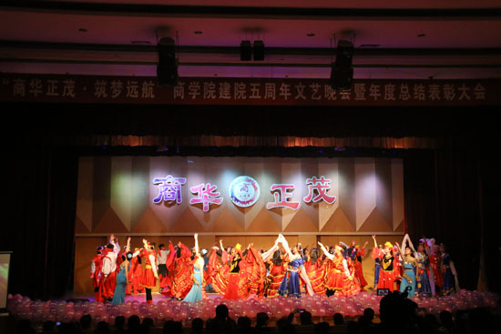 近日,商学院举办“商华正茂,筑梦远航”建院五周年文艺晚会暨年度总结表彰大会,学院师生代表500余人观看演出。