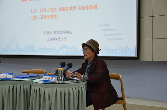 彭德华教授围绕师生关系、同事关系与新入职教师做了分享。她说,教师要注重锤炼自己的师德、师能、师学、师魂,提高人格修养,净化灵魂,热爱教育事业,关爱学生,理解学生,引领学生树立正确的人生观、价值观。与同事之间建立良好的合作关系,求同存异,共同发展。
