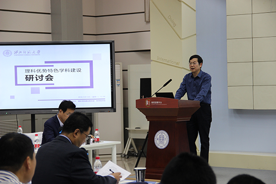 5月14日下午,由理科学科建设委员会、科学技术处主办的理科优势特色学科建设研讨会在教师发展中心举行。副校长、理科学科建设委员会主任董晨钟出席并讲话。理科学科建设委员会委员,各理科学院班子成员、系所中心主任、学科带头人、青年教师骨干代表和相关职能处室负责人参加研讨会。