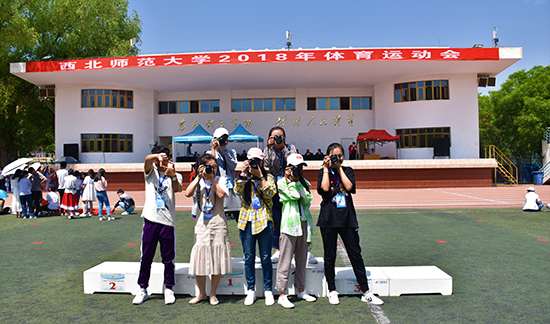 每一帧镜头、每一行文字、每一声发自心底的加油祝福,都是运动会耀眼的见证。西北师大新闻中心学生记者团的全体小记也在默默坚守岗位。奔波了一个上午的新闻中心摄影部记者徐芊芊在拍摄任务完成后,来不及吃午饭便急匆匆赶回办公室筛选照片,“最后在学校官网上发布的20张照片,需要我从1000多张照片中筛选。” 为了在不影响运动员的情况下拍到更好的照片,他们取景时大都是跪着或者蹲着。