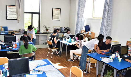 各学院后援队率先担负起运动会现场的服务职责。传媒学院的后勤人员杨森瑞说:“搬桌凳、撑帐篷、公示赛程安排、引导运动员入场以及维持签到纪律是我们作为学院后援队在运动会期间需要进行的日常工作。”教育学院郭诗怡正在更新赛事进度表,“我们一共有七个小伙伴负责学院的后援工作。全部随时待命,只要有需要的地方就上。”