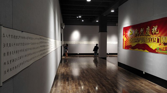 笔墨抒豪志,真心献给党。为庆祝建党97周年和改革开放40周年,引导广大学生深入学习宣传贯彻党的十九大精神和习近平新时代中国特色社会主义思想,交流学习成果。6月30日至7月2日,由美术学院本科生第一党支部主办的党的十九大报告经典语句书法长卷展在博物馆举办。
