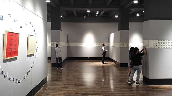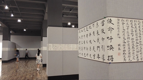 本次书法长卷展以党的十九大报告为蓝本,精选经典语句,由书法专业百名师生共同书写,书体以隶、楷、行书为主,以160米长卷幅式呈现,主题思想突出、设计风格精致、书体墨法迥异,用传统书法艺术形式表达了师生对党的十九大精神的深刻理解和爱党爱国的赤子之心。
