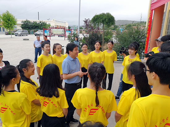 7月20日,党委书记张俊宗与学校办公室、党委学生工作部、教务处、团委相关负责同志一行,专程赴会宁县大沟镇中心小学亲切慰问了学校“爱在远山”2018年甘肃省深度贫困地区留守儿童艺术教育精准扶贫小分队师生,并出席了中国青年报社“雏鸟伴飞关爱计划—爱心夏令营”启动仪式。中国青年报社体育部主任、中国高校传媒联盟执行秘书长曹竞,会宁县县委常委、机关工委书记张朋,会宁县妇联主席胡巧华等参加了活动。