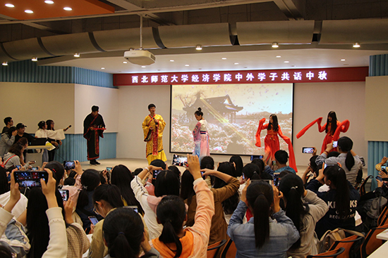 9月21日,西北师大经济学院举办“做月饼,学书法——中外学子共话中秋”文化体验活动,来自摩尔多瓦、巴基斯坦、蒙古、希腊、土库曼斯坦、埃塞俄比亚等国家的留学生与中国学生欢聚一堂,一起做月饼、写书法、猜灯谜、赏诗词、送祝福......喜迎中秋佳节,品味中国优秀传统文化。