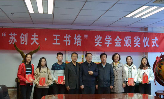 2017年,苏创夫先生决定向西北师大生命科学学院捐款20万人民币设立“苏创夫•王书培”奖学金。该奖学金从2017年起,连续10年,每年奖励西北师大生命科学学院5名品学兼优的家庭经济困难学生,每人奖励4000元,将累计奖励50名学生。