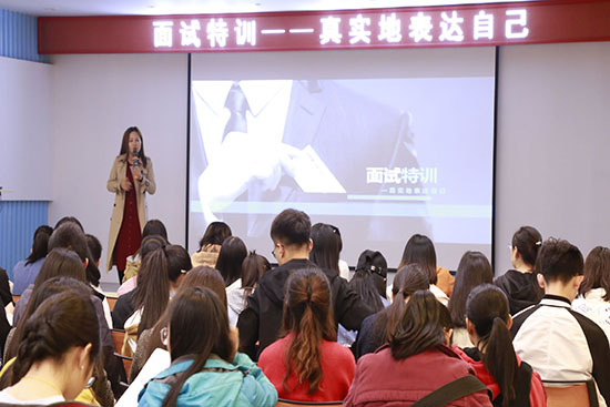 在题为《面试特训——真实地表达自己》《未来金融家——从简历倒推生涯规划》的两场讲座中,第一、二届全国大学生简历大赛组委会评委、上海乔布堂信息科技有限公司大学生职业生涯规划师刘学英老师以案为例,详细讲解了面试分类、流程、技巧以及简历写作要点难点,并就面试着装、自我介绍、生涯规划、期望薪酬等问题给同学们互动答疑。她认为,面试需要展示求职者的领导能力、合作能力、学习能力、表达能力、沟通能力、解决问题能力等等,而“简历是用脚走出来的”,简历就是同学们一场场考试,一个个证书,一份份实习和一段段校园经历,只有不虚度大学时光,才能书写出一份有竞争力的简历。在场同学纷纷表示,通过培训讲座,掌握了一定的面试技巧和简历写作技能,对职业生涯规划的重要性有了更加深入的理解,明白了“凡事预则立、不预则废”的道理,为今后科学合理地规划大学学习与生活奠定了良好的基础。