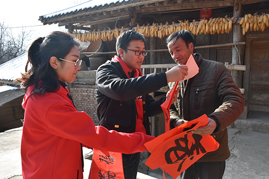 “我认为,扶贫不仅扶的是物质,更要注重精神扶贫和文化扶贫。”心理学院谈晓东同学说,他们创作的书法作品,被很多村民家悬挂在主屋,不但营造了浓浓的中国年气氛,而且提升了家庭文化。