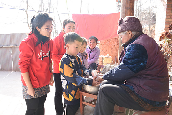 家是社会的最小细胞,实现美好生活,来源于一个个幸福的家庭。随着脱贫攻坚的推进,建设幸福、温暖、文明的家庭,显得尤为重要。西北师大学生来到村民家中和他们共同开展“孝老敬老”感恩父母、“写给爸妈的一份信”亲子谈心谈话、“爱牙护牙一堂课”健康生活、“七彩心理讲堂”游戏互动、共同写春联贴窗花等活动,营造了欢乐祥和的团圆生活,凝聚奋发图强的精神力量。