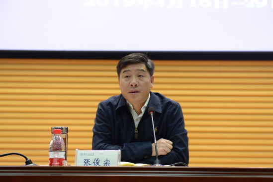 张俊宗指出,重视本科教育是高等教育的规律性问题,把本科教育放在人才培养的核心地位、教育教学的基础地位和新时代教育发展的前沿地位。要把此次本科教育工作会议精神和要求贯穿在全年工作之中,首先要抓稳抓细抓实,坚定推进“西北师大本科教育100条”落地生根,深刻领会全国本科教育工作会议精神,更新观念,打牢本科教育教学的思想基础。要坚持导向,纠偏认识,统一思想,真正做到“四个回归”和“八个首先”。要坚持“以本为本”,回归常识,围绕学生读书来办教育,引导学生求真学问、练真本领,合理为学生“减负”;要回归本分,使教师以教学为第一要务,热爱教学、倾心教学、研究教学;要回归初心,坚持正确的政治方向,用知识体系教、价值体系育、创新体系做,培养德智体美劳全面发展的社会主义建设者和接班人;要回归梦想,倾心实现教育报国、教育强国梦,实现中华民族的伟大复兴梦。要把立德树人贯穿到人才培养全过程,始终保持清醒头脑,牢牢站稳政治立场,确立“以学生为中心”的教育观念;要改进和加强思想政治教育,切实把做好思政工作作为学校的一项系统工程,充分挖掘专业课程的思政元素,推进课程思政、专业思政有机融合。要加强教育教学的过程管理,积极推进“新师范”“新工科”“卓越人才计划”建设,淘汰“水课”、努力打造一批深受学生欢迎的高质量金课”。立足实践、突出重点、激活动力,稳扎稳打推进“西师本科教育100条”落地生根,观念上,立足实际,容不得半点虚浮和官僚主义思想;行动上,要把本科教育教学总体要求和具体特点相结合,掌握复习提问、引入新课、讲授新课、归纳总结、课后作业五个课堂教学环节,提高教师科研、教学水平,改善教学条件,增强教学成果竞争力,加强教育成果培育,激发教师和学生积极性。