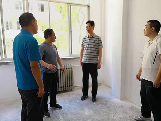 8月15日上午,刘仲奎校长带领学校办公室、学生社区党工委、国有资产管理处、后勤保障部负责人,实地检查兰天学生公寓维修粉刷施工进展情况。