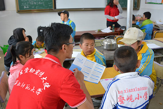 甘肃定西后地湾村、壑岘村仍然处在脱贫攻坚“攻城拔寨”的关键时期。教育扶贫政策的宣传,对当地精准扶贫工作推动起着积极长远的影响。西北师大组织30余名师生深入后地湾和壑岘村小学,宣传国家扶贫和学校资助政策;组织小学生集体参与国家资助政策知识竞赛等多项宣传活动。壑岘村村民张兵激动地说:“经过西北师大师生的讲解,我们才知道原来国家对娃娃上学还有这么多优惠的政策!我们一定支持娃娃好好念书,走出大山,学真本事,脱贫致富。”