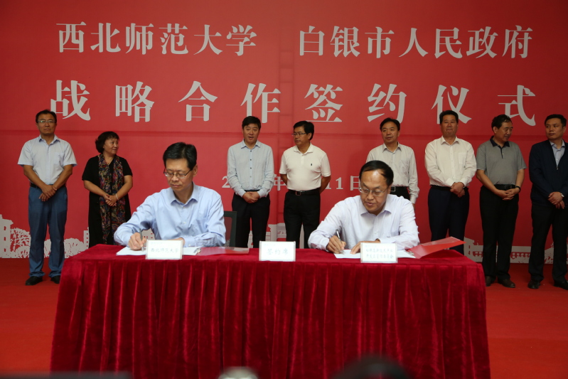 9月11日下午,西北师大与白银市人民政府战略合作签约仪式在西北师大新校区举行。白银市委副书记、市长张旭晨,白银市政府副市长、白银高新区党工委第一书记贾汝昌,白银市政府副市长高峰,白银市政府秘书长张明玺,西北师大党委书记张俊宗、校长刘仲奎以及相关部门负责人、研究生代表100余人参加签约仪式。签约仪式由西北师大副校长董晨钟主持。