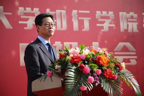中共甘肃省委教育工委专职副书记、甘肃省教育厅党组成员张晓东,西北师大校长、知行学院理事会理事长刘仲奎,兄弟高校代表、兰州财经大学陇桥学院院长路文江,马来西亚UCSI大学副校长 Moses Ling,中国建设银行甘肃省分行党委书记、行长方华平,校友代表、教师代表、学生代表分别致辞。西北师大知行学院党委书记王喜存主持大会,西北师大知行学院院长孙建安作建校20周年主旨报告。