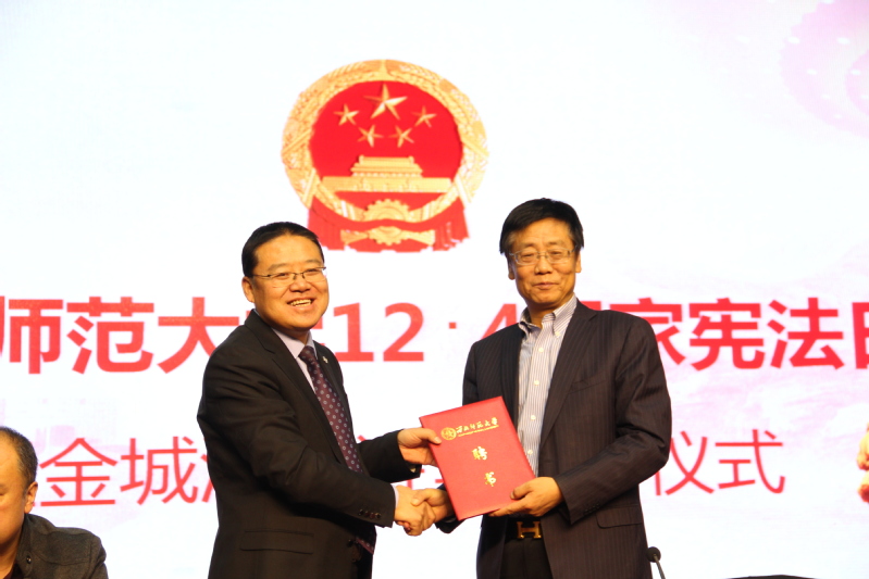 李朝东副校长在致辞中说,学校作为传播社会主义法制文化的基地,自觉遵守并弘扬法律法规是广大师生共同的任务。法学院师生要充分利用自己的专业知识,通过辩论赛、演讲比赛、模拟审判等活动开展内容丰富、形式多样的宪法宣传工作,努力在全社会形成学习宪法、遵守宪法、维护宪法、运用宪法的浓厚氛围,让宪法精神根植心底,化作每个公民遵法守法的行动自觉,做宪法坚定的信仰者、宣讲者、实践者、维护者。