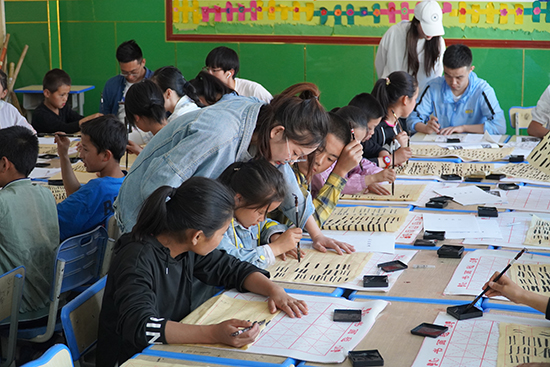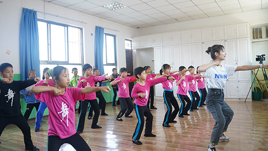 10天时间、5门课程,为了充分调动当地学生学习艺术的热情,实践团队铆足了劲,使出了“真功夫”。为做到艺术教育的全覆盖,他们开设舞蹈课、体育课、美术课、书法课、普通话课等课程,尽可能“投其所好”。同时,根据小学生的年龄和喜好将他们分别编入不同的班级,于是“草莓班”“苹果班”“花儿与少年”“小飞象班”等充满童趣和想象力的班级应运而生,实现了每个班各有侧重,教学的趣味性和实效性的有机统一。