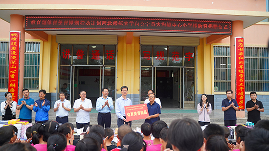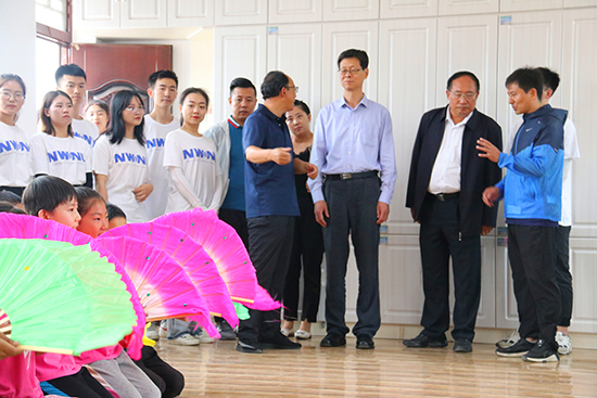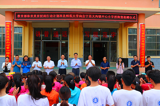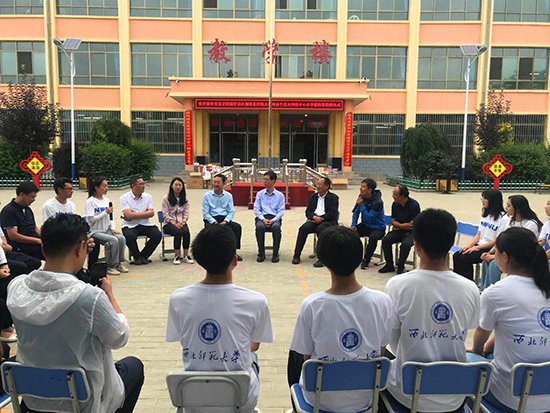 8月4日,西北师大校长刘仲奎与校团委相关人员一行,专程赴会宁县大沟镇中心小学慰问了学校“爱在远山·体育美育浸润行动计划”社会实践团师生,白银市教育局副局长李文强、会宁县委书记王科健、县人大常委会主任李进军及县教育局局长王池柳等参加活动。