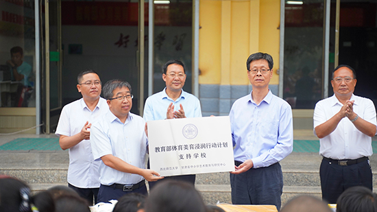 刘仲奎为大沟镇中心小学授牌“教育部体育美育浸润行动计划支持学校”“教育部体育美育浸润计划日韩人妻无码一区二区三区久久99_日韩精品一区二区三区中文在线_无码日韩精品一区二区免费_久久久91精品国产一区二区三区_亚洲精品久久久一区黄无码_国产91精品一区二区麻豆网站_成人国内精品久久久久影院教学实践基地”,并代表学校为大沟镇中心小学捐赠体育美育教学用具。刘仲奎一行观摩了实践团队开展的舞蹈、武术、书法等课程,参观了实践队员和孩子们共同制作的美工作品展览。