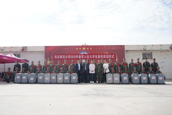 98日上午,西北师大副校长邓小娟和党委学生工作部、旅游学院、法学院相关负责人前往皋兰县役前训练基地欢送2020年从学校应征入伍的大学生新兵。安宁区人民武装部部长杨云江参加仪式并为大学生新兵佩戴红花、赠送纪念品。