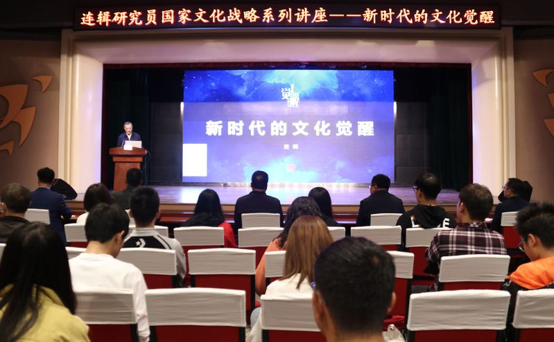 在讲座中,连辑引经据典、深入浅出,围绕改革开放四十年来国家文化发展阶段性分析和新时代背景下我国文化发展的十大特征,同师生进行了交流。他指出,改革开放四十年来,中国文化强国建设侧重于以文化为核心的软实力、核心竞争力的建设,文化发展取得了战略主动,文化建设取得了丰硕成果,文化自觉已经成为一种民族的、整体的社会性觉悟。连辑重点就“马儒”相向而行、非此即彼的思维模式被打破,文化的国家观逐步形成,新一轮的文化自觉在社会上悄然兴起、新一轮中西方文化比较深度展开,以文化为核心的软实力建设成为国家战略,文化的经济属性、文化安全问题日益突出,文化的层级结构趋于扁平化,文化样式的时代特征明显,新时代文化发展的新隐忧等新时代背景下我国文化发展的十大特征,深刻阐释了文化自觉是一个以经济社会发展为物质基础的主观认知过程,文化自觉需要理性的、客观的、辩证的科学思维方式作保障,要和经济社会发展的自觉相向而行、相伴而行。