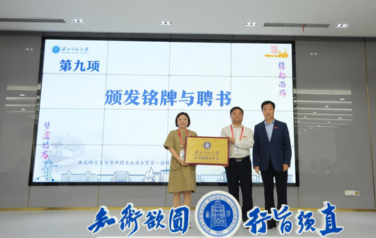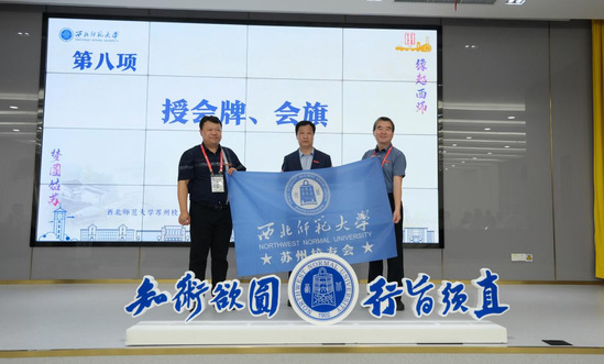 张生勇向苏州校友会授会旗、会牌,并为新任理事会成员颁发铭牌与聘书。