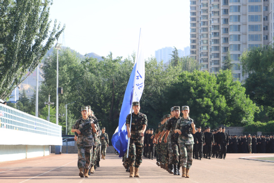 在《我的校园在黄河岸上》的校歌声中,军训会操表演落下帷幕。