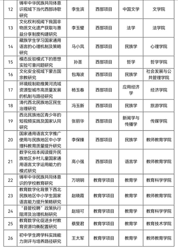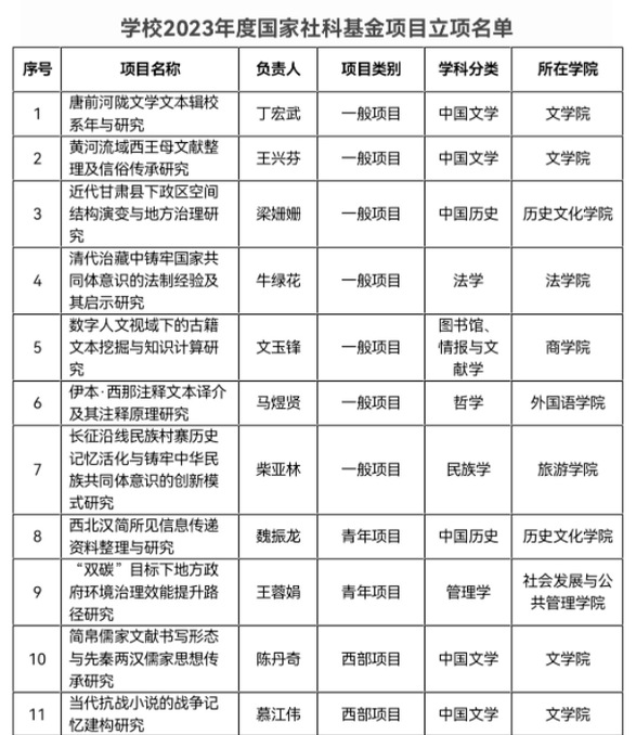 西北师大获批2023年度国家社科基金项目26项
