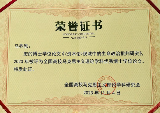 西北师大教师获2022年度全国高校马克思主义理论学科优秀博士学位论文奖