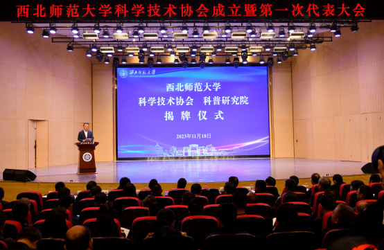 贾宁在致辞中表示,在长期的办学历程中,一代又一代西北师大人扎根西北大地办教育,坚守教育初心,彰显地处丝绸之路黄金段地缘优势,积极开展华夏文明传承与“一带一路”研究,着力打造教师教育人才培养高地,成为推动西北教育事业和经济社会发展的重要力量。近年来,学校始终把服务社会作为科学研究的驱动力,紧紧围绕提升公民科学素质和学生成长成才这一主线,坚持科技创新和科学普及“两手抓”,引领学校科技工作者努力成为科学知识的传播者、科学方法的实践者、科学思想的倡导者、科学精神的弘扬者。同时,着力发挥基地平台的科学研究和知识传播功能,在科普宣传、脱贫攻坚、乡村振兴、引智引才等多方面开展了卓有成效的工作,形成了科研创新和科普工作的特色和亮点,为学校科研和学科高质量发展奠定了坚实基础。当前,新一轮科技革命和产业变革突飞猛进,科技创新速度显著加快。作为西部师范教育的重要推动者,西北师大肩负着联结基础教育和高等教育、链接国家战略和区域目标的重要使命,必须以更高站位、更大力度、更实举措推进学校科协工作,发挥好科学普及在科技创新引领高质量发展中的重要基础性作用,以科普教育创新发展激活学校科技创新“一池春水”,努力争取在服务国家重大需求和地方经济社会发展需要上有更大作为、实现更大突破。希望全校上下以科协成立为新起点,牢记初心使命,勇于担当作为,在教育、科技、人才一体化发展格局中,开创科学普及和科技创新工作新局面,为加快建设教师教育特色鲜明的一流大学,奋力推进中国式现代化的教育实践贡献智慧和力量。