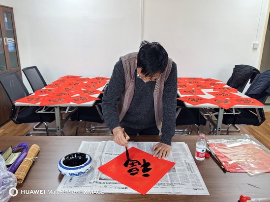 活动中,广大盟员和师生共捐献各类图书260余册。盟员吴怀信和常刚宏教授现场挥毫泼墨为师生撰写春联,以新春送“福”的形式为广大师生送上祝福。