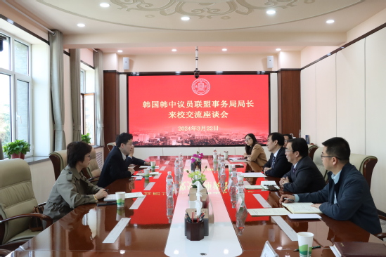 2024年3月22日,韩国韩中议员联盟事务局局长李国峰博士一行来校交流。省政协港澳台侨和外事委员会副主任张久武陪同座谈,西北师大党委常委、副校长田澍出席座谈会,国际合作交流处、历史文化学院、外国语学院负责人参加座谈。