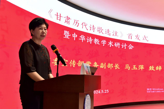马玉萍指出,甘肃文化底蕴深厚、文化资源丰富,是中华民族的重要文化资源宝库。12卷本《甘肃历代诗歌选注》以宏阔的视野和深邃的思考,生动诠释了中华民族生生不息的文化根脉,全方位立体化展示了陇原大地厚重的历史、璀璨的文化。相信这部著作一定会成为大家感受文学魅力、感悟甘肃历史的有益读物。希望广大专家学者和研究出版单位深入学习领会习近平文化思想,认真总结这套书的成功经验,充分利用我省丰富的古籍资源,积极策划相关选题研究,持续加大古籍整理研究工作,努力让书写在古籍里的文字都活起来。