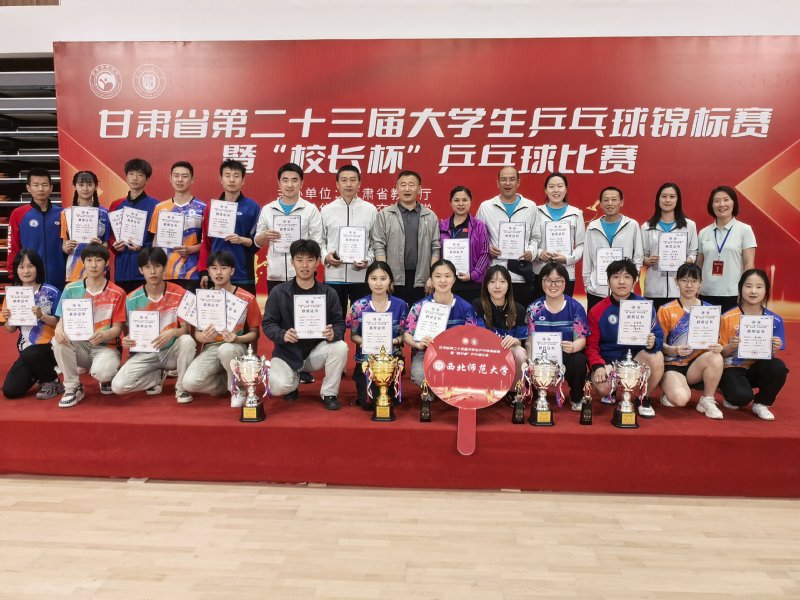 经过三天紧张激烈的角逐,西北师大乒乓球代表队员们以高超的竞技水平、良好的赛风赛纪、团结协作的拼搏精神再创辉煌,取得三金三银一铜的优异成绩。获得学生男子乙组团体冠军,学生女子甲乙组单打冠军;教工组团体亚军,学生女子甲乙组团体亚军;学生男子乙组单打季军。
