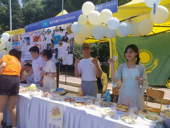 舌尖美食,文化浸润,文化美食区共设立22个文化风情展示点,让在校师生在家门口领略异国文化风情,了解各国家历史、地理、文化元素的同时,还能品尝哈萨克斯坦抓饭、吉尔吉斯斯坦烤肉、俄罗斯沙拉、摩尔多瓦奶酪、越南咖啡、老挝奶茶、蒙古马奶酒……。留学生们身着民族服饰,一边制作展示,一边现场解说,丰富的美食作为各国饮食文化的载体,吸引了诸多师生驻足观看,品尝,拍照。