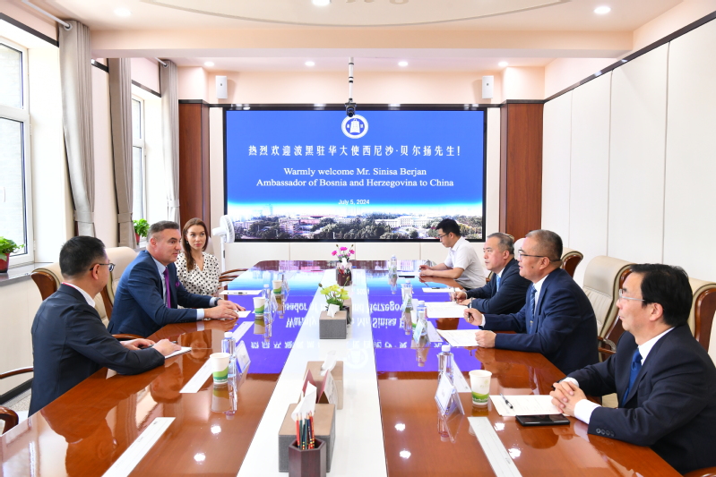 7月5日,波黑驻华大使西尼沙·贝尔扬携夫人来西北师大交流访问,校长王占仁、副校长张明军出席会议,国际合作交流处相关负责人参加。