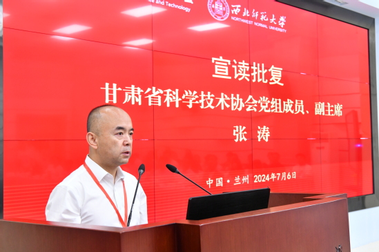 甘肃省科学技术协会党组成员、副主席张涛宣读甘肃特色农林产业开发协同创新基地批复。