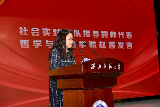 社会实践团队指导老师代表、“青苗计划 情暖积石”关爱积石山儿童(第二期)专项实践团指导老师、哲学与社会学院赵茜老师代表指导教师发言。她表示,“纸上得来终觉浅,绝知此事要躬行”,社会实践活动是大学生树立正确的世界观、人生观和价值观的重要途径,是高校思想政治工作的重要载体,也是大学生提高自身素质、学以致用,服务地方经济社会发展的重要渠道。作为暑期社会实践活动的指导教师,将在实践过程中筑牢安全底线,严格管理、精心组织、全程跟队,确保实践活动的顺利开展。