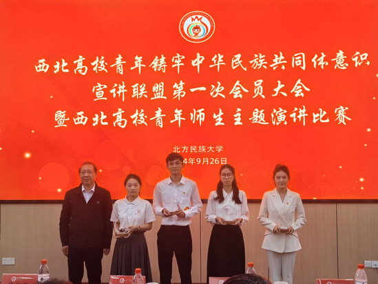 9月26日,“西北高校青年铸牢中华民族共同体意识宣讲联盟”在北方民族大学举行第一次会员大会暨西北高校青年师生主题演讲比赛。我校马克思主义学院青年博士邢艺譞、“小红马”理论宣讲团成员马俊和党委统战部负责人参加。