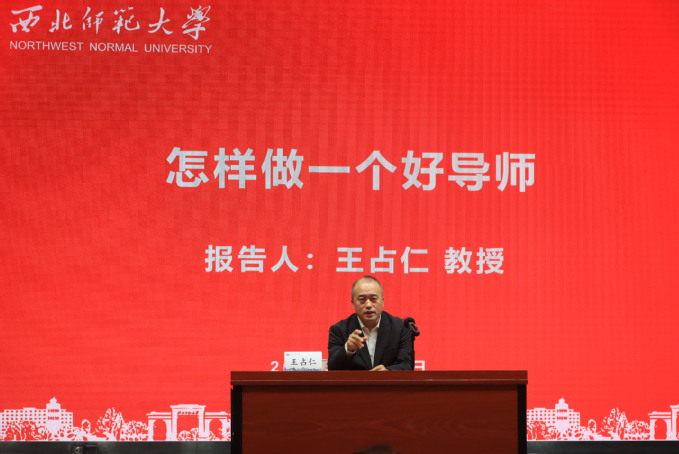 11月25日,西北师大举办新聘研究生导师聘任仪式暨培训班首场报告会。校长、党委副书记王占仁作了题为“怎样做一个好导师”的专题报告。学校新聘任的博士生导师、硕士生导师以及研究生院、人事处全体干部270余人参加。