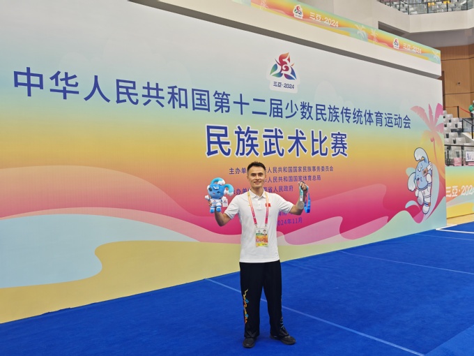 1122日,中华人民共和国第十二届少数民族传统体育运动会在三亚开幕。西北师大体育学院教师温兵代表甘肃省参加本届运动会民族武术比赛。经过激烈角逐,荣获男子传统一类拳三等奖、男子对练二等奖。