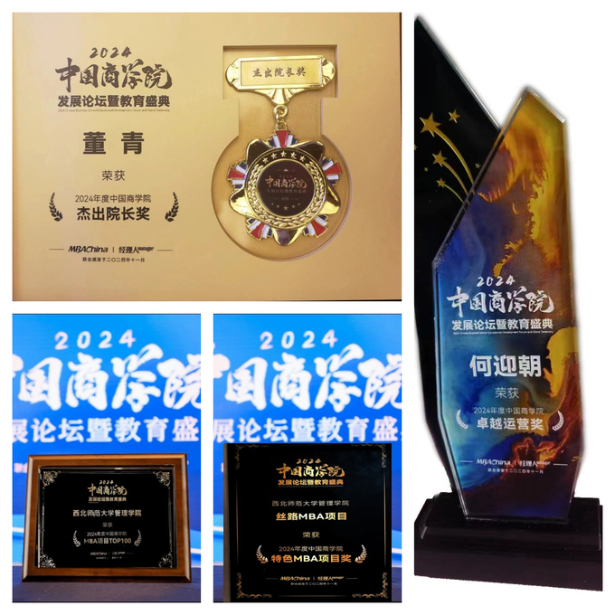 11月29日,由MBAChina和经理人杂志联合主办的“2024年度中国商学院发展论坛暨教育盛典”在北京召开。盛典现场发布了“2024年度中国商学院系列TOP”等榜单,表彰2024年为MBA教育作出突出贡献的项目、团队和个人。西北师大MBA中心入选“2024年度中国商学院MBA项目TOP100”榜单,并荣获“全国商学院特色MBA项目奖”。西北师大管理学院董青荣获“2024年度中国商学院杰出院长奖”,管理学院何迎朝荣获“2024年度中国商学院卓越运营奖”。