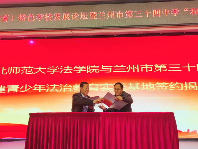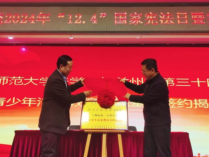 12月4日,在第十一个国家“宪法日”,西北师大法学院与兰州三十四中举行共建“青少年法制教育实践基地”签约仪式。西北师大法学院相关负责人及兰州三十四中师生代表参加。