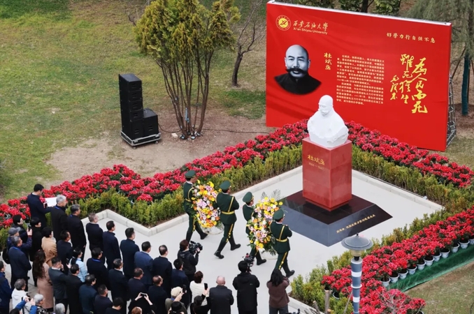 交流走访期间,焦爱胜等出席杜斌丞雕像落成揭幕仪式和“正泰・杜斌丞奖学金”颁奖典礼,与西安国家版本馆(文济阁)开展业务交流。