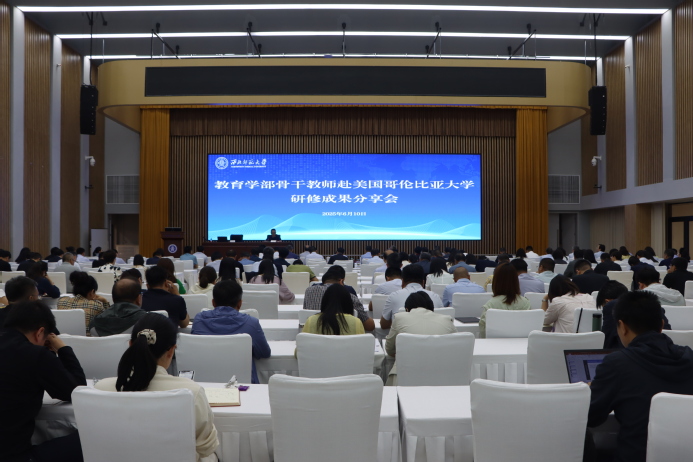 6月10日,西北师大举办教育学部骨干教师赴美国哥伦比亚大学研修成果分享会。党委书记贾宁,校领导王全进、张明军、王文昇、马世年、阎岩出席会议,党委常委、党委组织部部长周琳辉以及各学院、各职能部门副处级以上干部90余人参加。