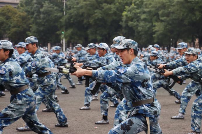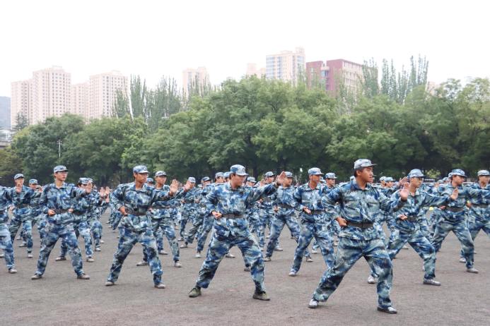 在总教官的指挥下进行了匕首格斗术、徒手格斗术、刺杀、单兵战术等多项军事科目汇报。全体参训学员动作精准、气势昂扬,彰显了新时代师大学子勇于拼搏、奋发向上的精神风貌。军训教官还展示了擒敌术应用。
